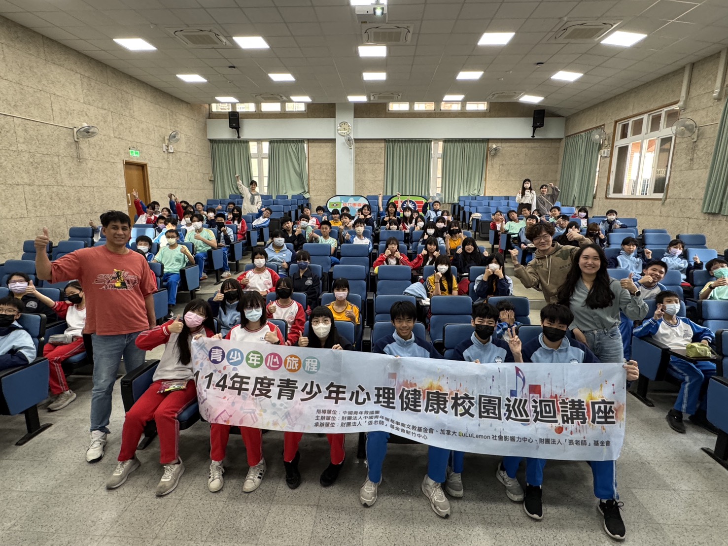由救國團新竹團委會及新竹「張老師」輔導中心結合財團法人中國青年服務事業文教基金會、加拿大 LuLuLemon 社會影響力中心、財團法人「張老師」基金會,共同假新竹市三民國中辦理「青少年心理健康校園巡迴講座」,近500位師生熱情參與。