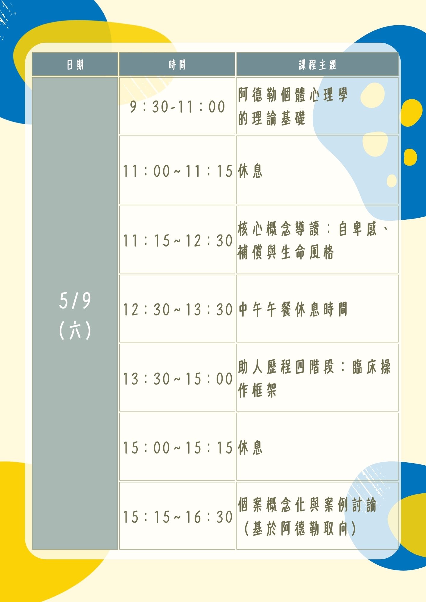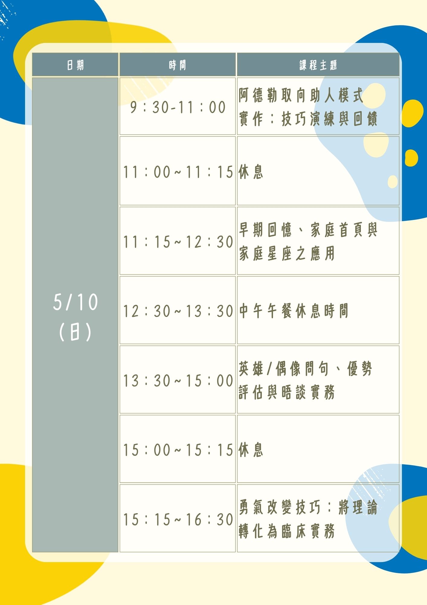 | 課程名稱: | 【高雄】阿德勒心理學實務應用:從理論到臨床的勇氣之旅 |