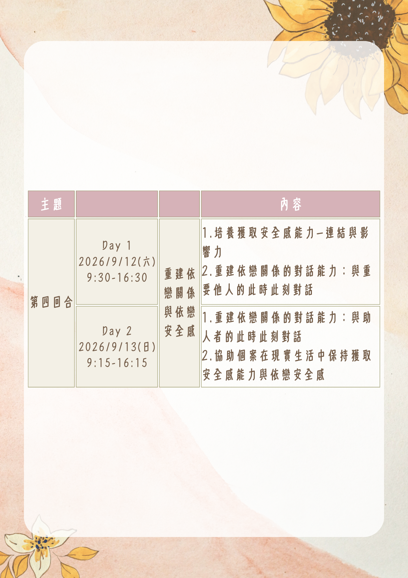 | 課程名稱: | 【高雄】依戀取向個別諮商實務工作坊—四回合課程 |